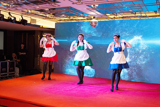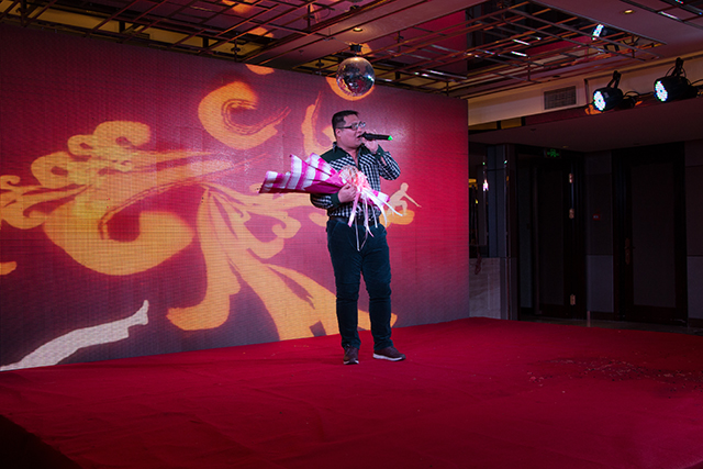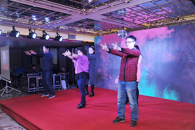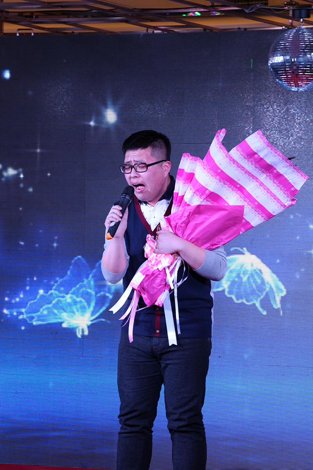 第二環(huán)節(jié)是生產(chǎn)制造部林秋楓的脫口秀《生活真煩惱》,搖身一變知心大姐和我們嘮嘮家長里短生活煩惱,最后一曲《社會搖》結(jié)束了“生活的煩惱”。不得不佩服林姐的好口才啊!今年晚會節(jié)目的“亮眼之作”小品《綁匪》,真是讓人眼前一片那啥啊(此處省略不說)。營銷部的賈殿鵬和市場部的王元峰為了節(jié)目也是蠻拼的啦。賈經(jīng)理那一頭金色長發(fā)、和王經(jīng)理那喜慶的肚兜兒,相信大家還是記憶猶新吧!集驚悚、懸疑、搞笑于一身的小品過后,在工程技術(shù)部夏寰宇的一首《你是我的眼》的歌聲中節(jié)目告一段落。之后游戲《看數(shù)字猜成語》、《背連背,心連心》火熱進(jìn)行。同時由領(lǐng)導(dǎo)抽取幸運二等獎并頒發(fā)獎項。